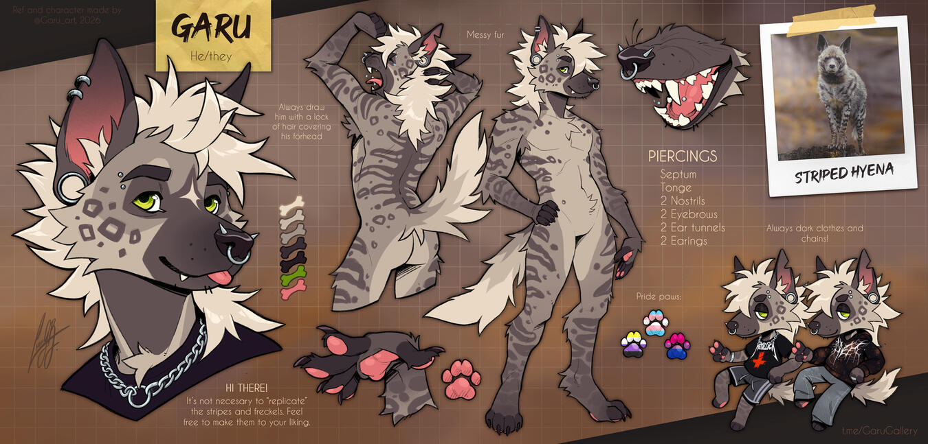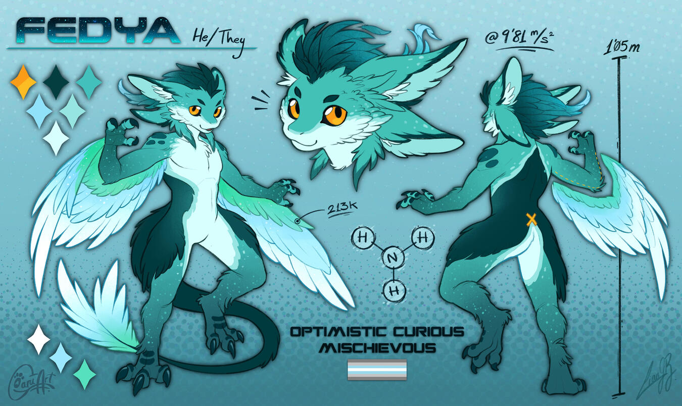 Reference sheet featuring your character. Includes front & back view, color palette and a headshot.Additional fullbody: +80%Additional headshot: +50%Additional chibi: +25%